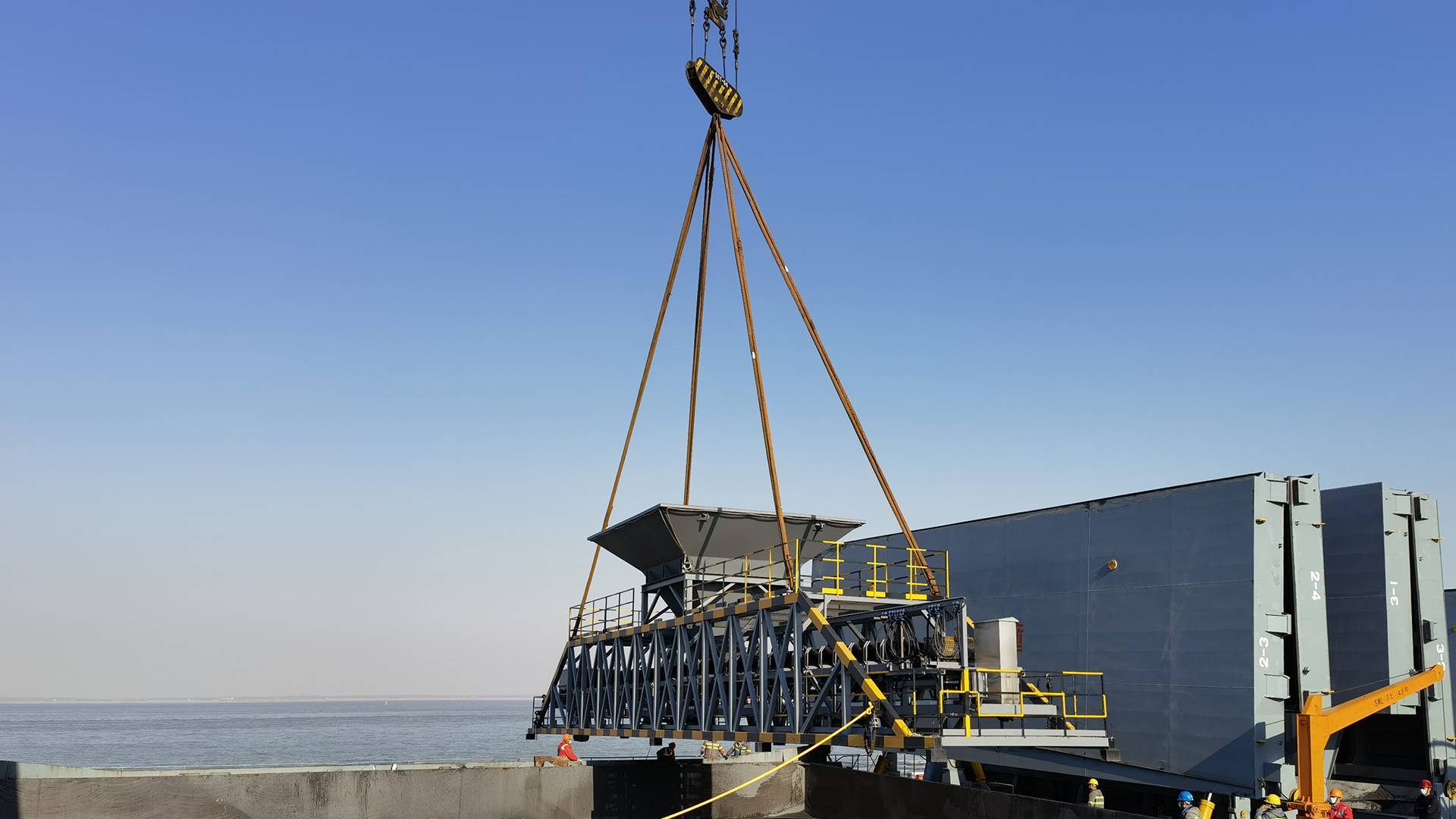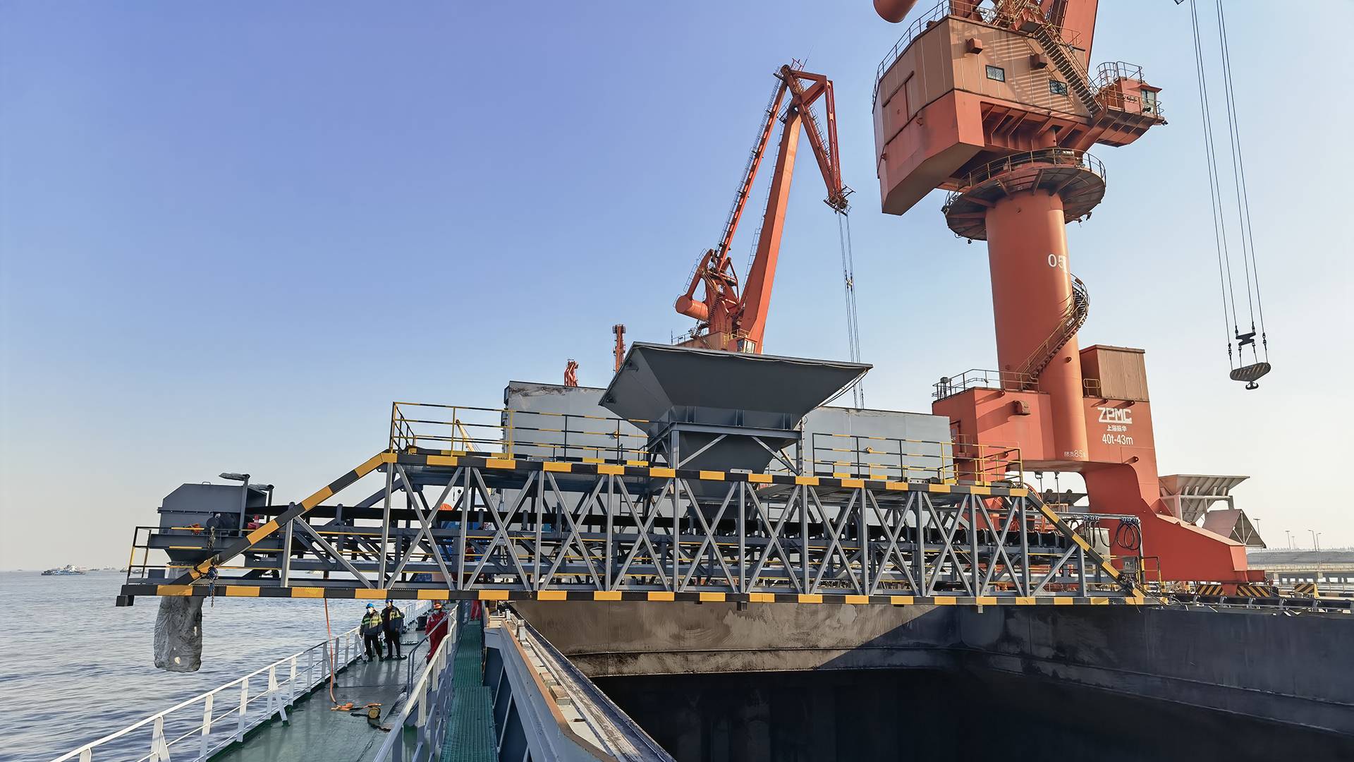 海鼎自动化科技过驳机高精度电子皮带秤具有卓越的高精度动态称重技术,全面解决了装载过程中出现超载、欠载双重问题,且无需中断物料输送,很好保障了装船效率,该系统主要由电子皮带秤、称重仪表、计算机、控制柜和通讯模块等部分构成。